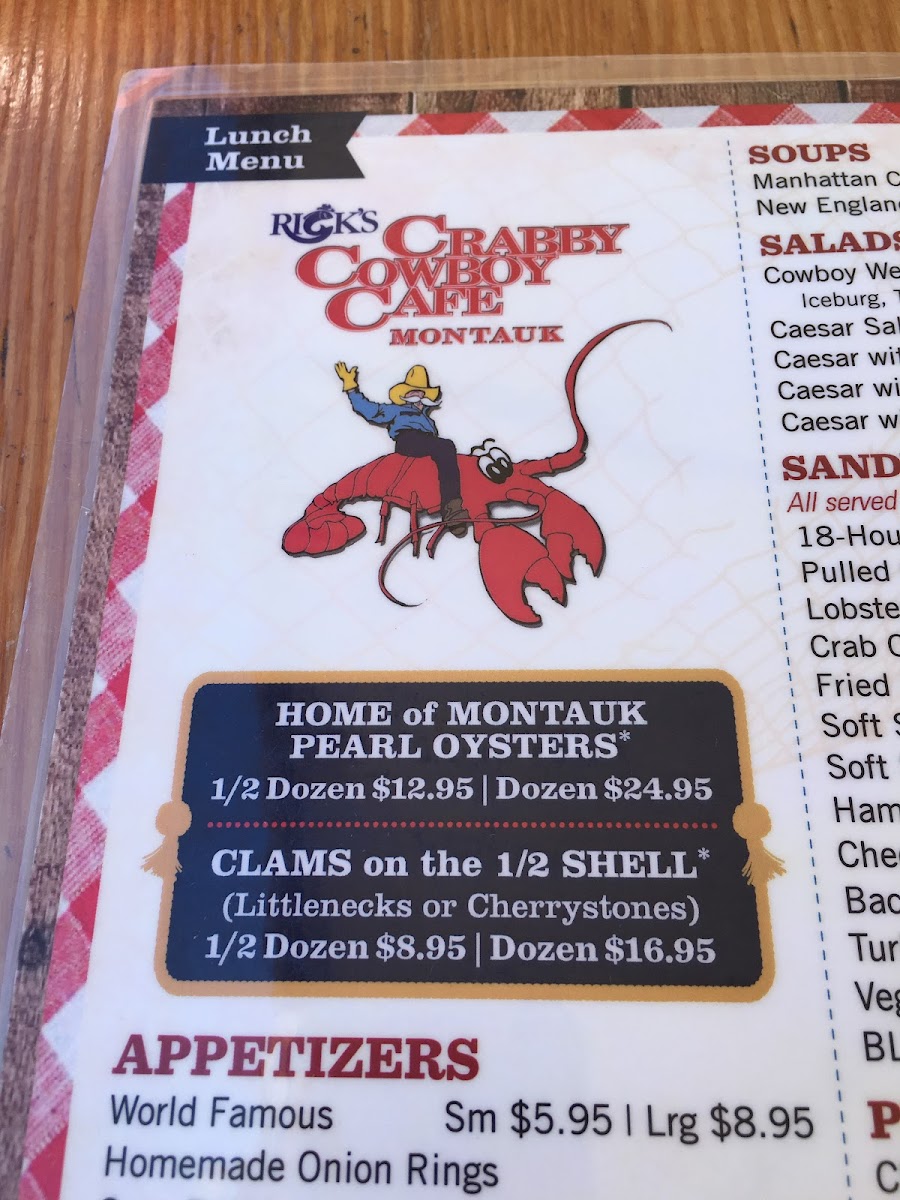 Rick's Crabby Cowboy Cafe offers a delightful menu that combines coastal flavors with hearty comfort food. The highlight of the menu is the Lobster Roll, a generous serving of fresh lobster meat tucked into a buttery, toasted roll, making it a must-try for seafood lovers. For those craving a lighter option, the Ceaser Salad provides a crisp, refreshing balance with its creamy dressing and crunchy croutons. The restaurant also stands out for its cocktail selection, with the Moscow Mule offering a zesty kick, perfect for pairing with any dish. The Clam Bake Bowl is another standout, featuring a delicious mix of clams, mussels, and other fresh seafood, served in a flavorful broth. Meat enthusiasts will enjoy the BBQ Combo, which brings together tender ribs, juicy sausages, and perfectly smoked meats, making it a satisfying choice for those looking for something more filling. Each dish is thoughtfully crafted, and the Price Tag reflects the quality of ingredients, providing great value for the experience. Overall, Rick’s Crabby Cowboy Cafe’s menu is a vibrant mix of flavors that cater to diverse tastes, whether you're after a light bite or a hearty feast.